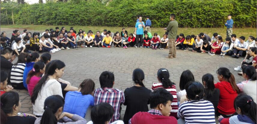 接下來的比賽項(xiàng)目是報(bào)數(shù),看似很簡單的事情,但過程總是因?yàn)槟硞€(gè)人開小差、不用心等導(dǎo)致團(tuán)隊(duì)失敗,失敗團(tuán)隊(duì)的隊(duì)長承擔(dān)100%責(zé)任,俯臥撐從5個(gè)到10個(gè)到20個(gè)到40個(gè)再到80個(gè),每一輪比賽輸?shù)膱F(tuán)隊(duì)隊(duì)長承擔(dān)的俯臥撐是上一輪的雙倍。比賽氛圍開始還很比較輕松,兩輪后大家開始緊張了,到第五輪時(shí),受罰的隊(duì)長苦苦支撐著、一次又一次爬起、趴下、再爬起時(shí),全體員工沉默了。隨后一名又一名員工趴下與隊(duì)長一起受罰,一起承擔(dān),最后其它團(tuán)隊(duì)的所有成員自愿自發(fā)全部圍繞在受罰隊(duì)長身邊一起受罰、承擔(dān),給受罰隊(duì)長支持、加油!